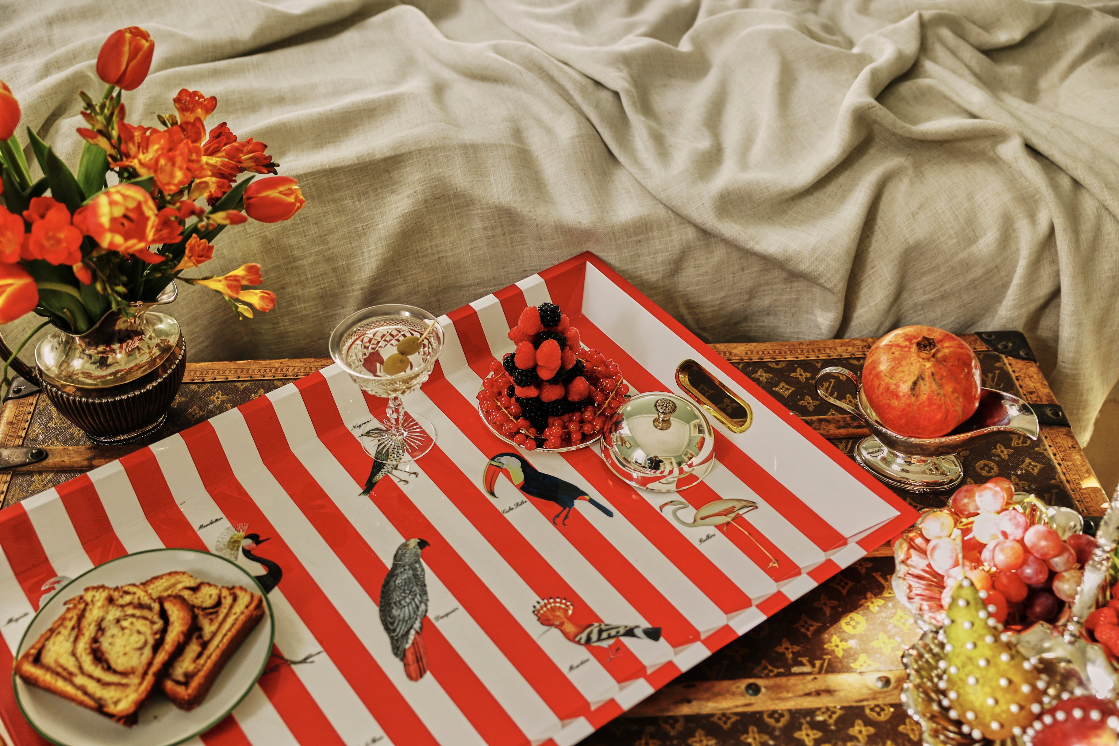 A butler tray, like any good butler, inhabits that perfect, mercurial space between respectful distance and easy reach of emerging whims. It graces with a stalwart presence that blends reliability and forbearance, benevolence and—let’s face it—a self-effacing bit of bling.